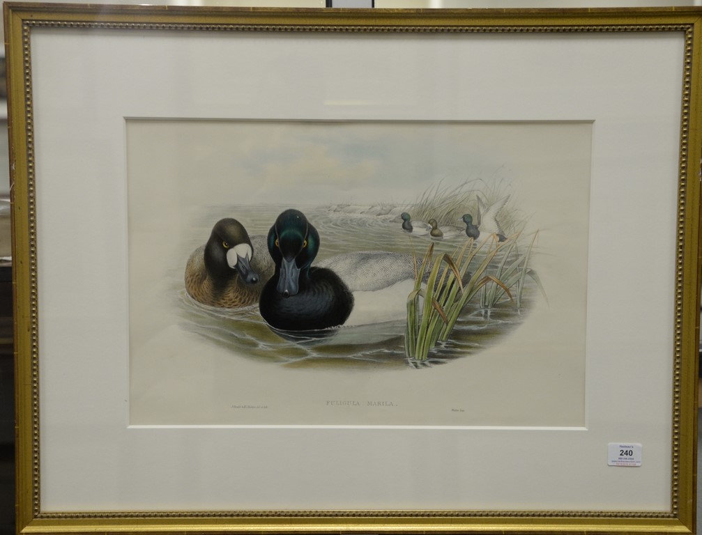 John Gould 1804-1881, pair of hand colored lithographs, Fuligula Marila and Mareca Penelope, 14 x 21 Provenance: Property from Credit Suisse’s Americana Collection