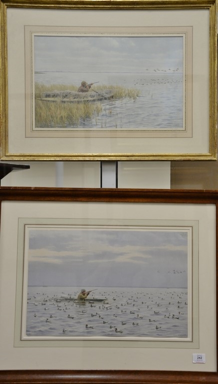 Arthur Burdett Frost 1851-1928, pair of chromolithographs, Duck Hunting in a Marsh and Duck Hunting with Decoys, signed in lithograph, 13 x 20 Provenance: Property from Credit Suisse’s Americana Collection