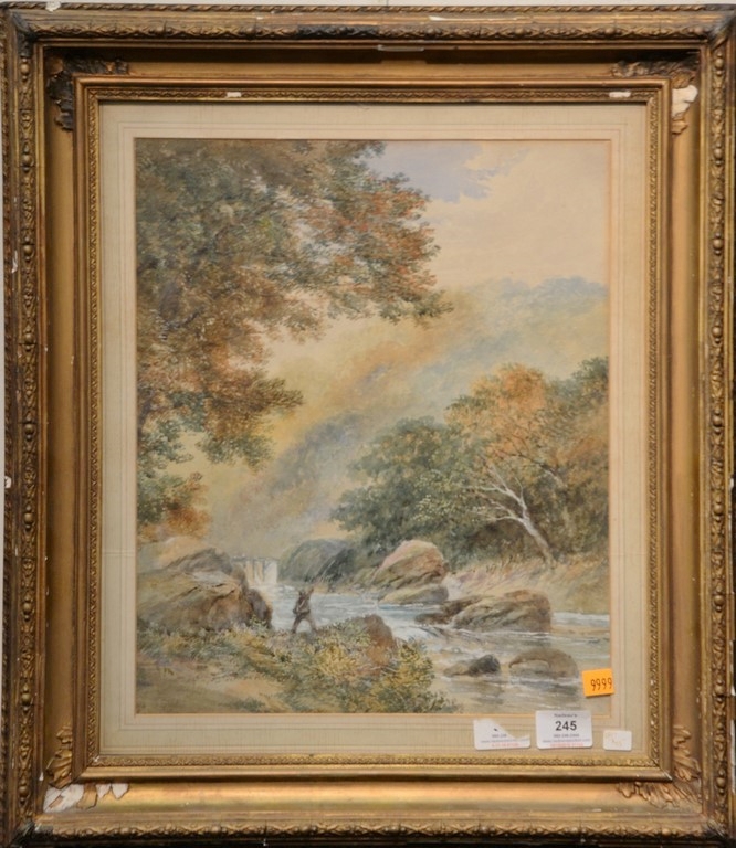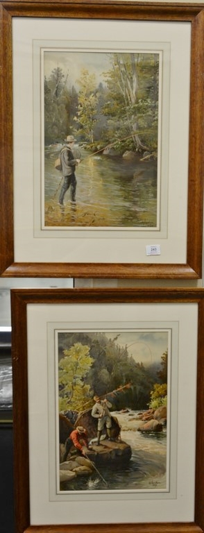 Henry Sandham, Set of three sporting chromolithographs from American Sporting Scenes published by Bradlee Whidden 1890, Salmon Fishing sight size 18 x 12, Moose Around the Corner sight size 12 x 18, and Fishing in a Stream sight size 18 x 12, framed and matted by Wesley Allen Framemakers. Provenance: Property from Credit Suisse’s Americana Collection