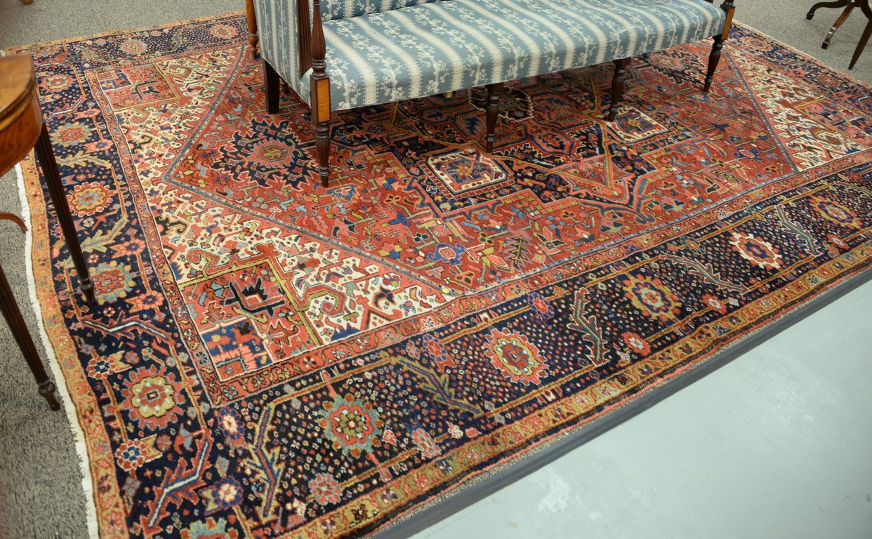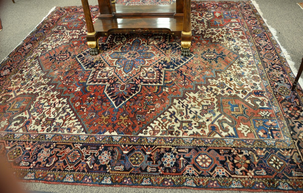 Queen Anne cherry highboy in two parts, upper portion with large cornice molding over pinwheel center drawer flanked by dual short drawers over three drawers on base with one long drawer over three drawers with scalloped skirt, set on cabriole legs and ending in pad feet, circa 1760 married, two legs repaired. ht. 70 1/4in., wd. 37 1/2in., dp. 19 1/4in.