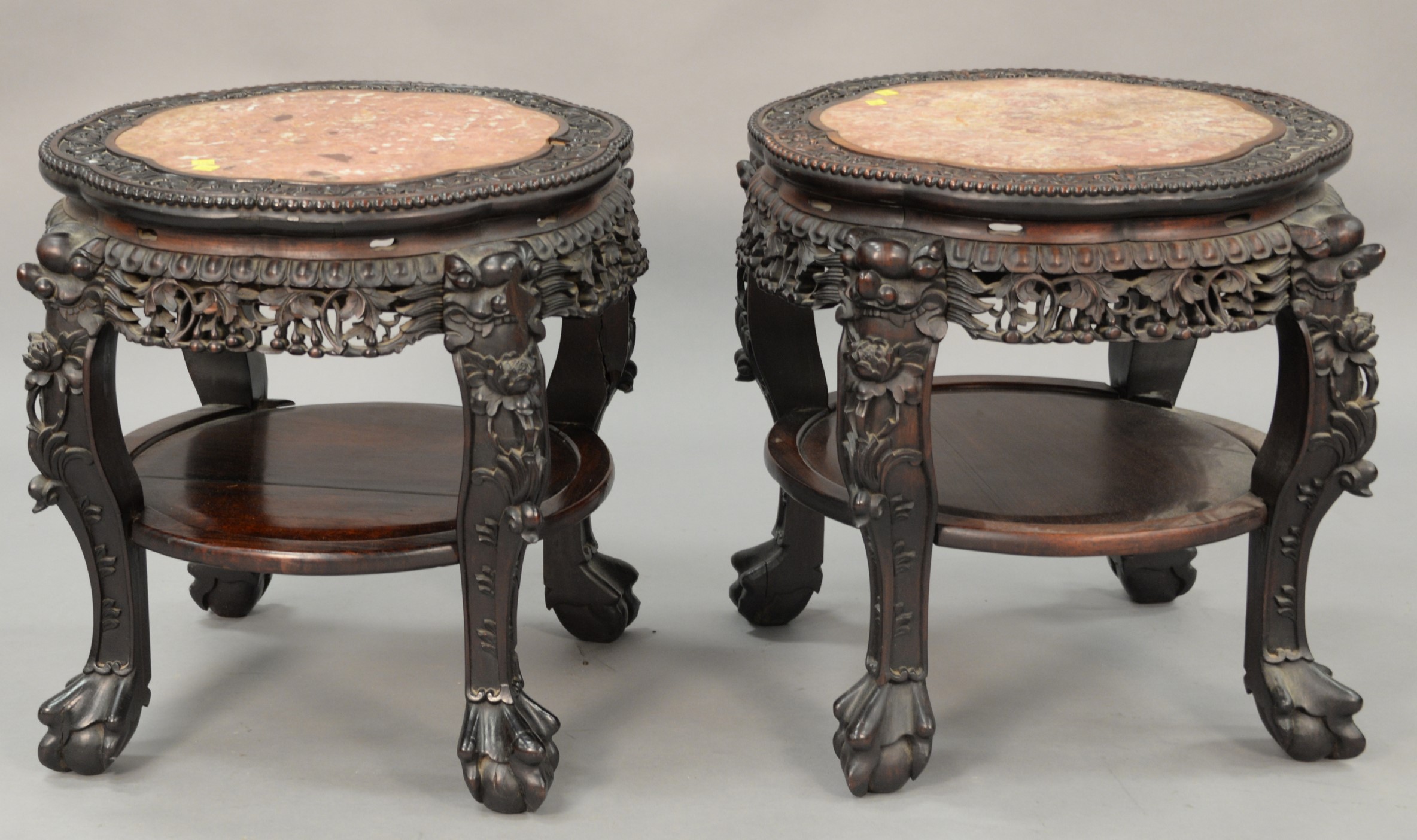 Chippendale mahogany upholstered wing chair having needlework decoration on seat and back, set on fan carved cabriole legs ending in claw and ball feet some restoration to legs.