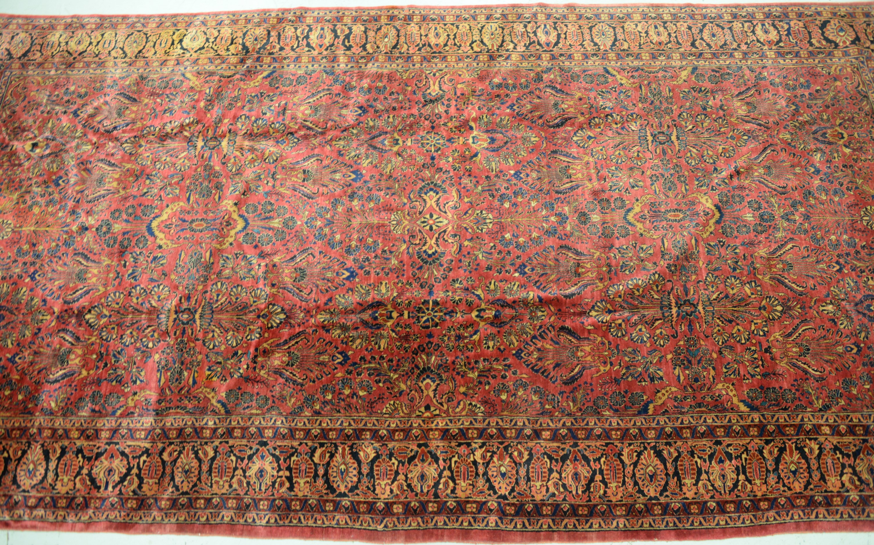 Three hooked rugs including a sporting dogs rug 2′ x 3’3, one with basket of flowers 2’3 x 3′ some damage, and one floral 2’4 x 3′. Provenance: The Estate of Natalie Rafferty