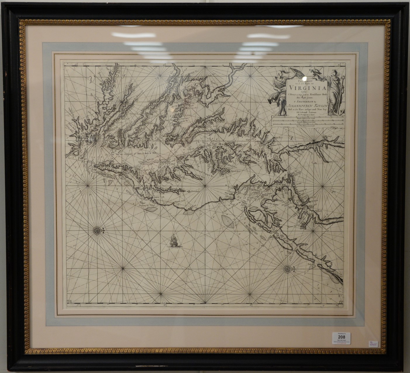 Johannes Keulen Map of Virginia Pas Kaart Van de Zee Kusten van Virginia engraving published in Amsterdam by Johannes Van Keulen 20 x 23 image sight size Provenance: Property from Credit Suisse’s Americana Collection