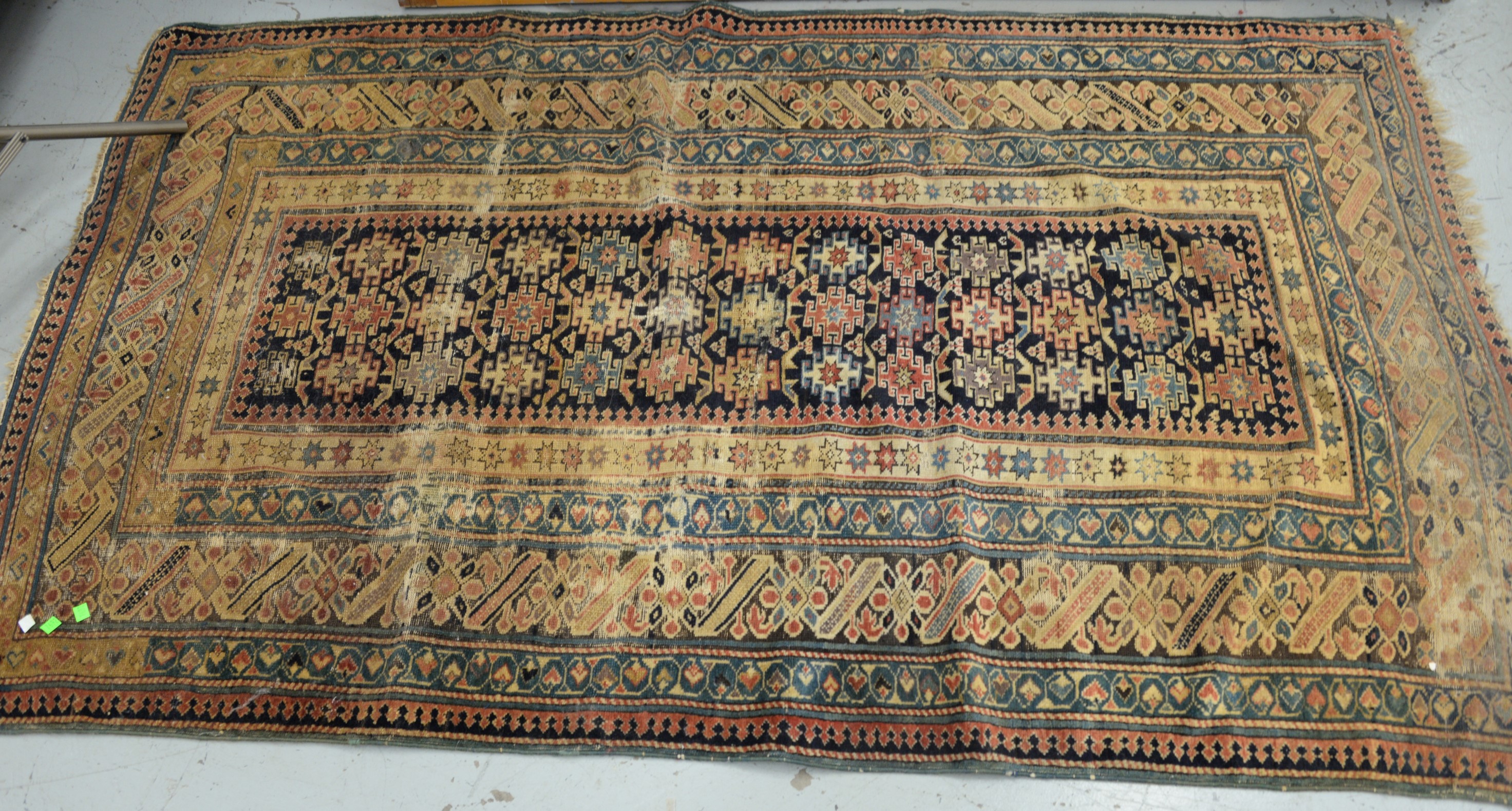 Ladderback great chair having turned finials, four slats, turned hand supports, and rush seat, all on turned legs, early 18th century ended out. seat ht. 17 in.