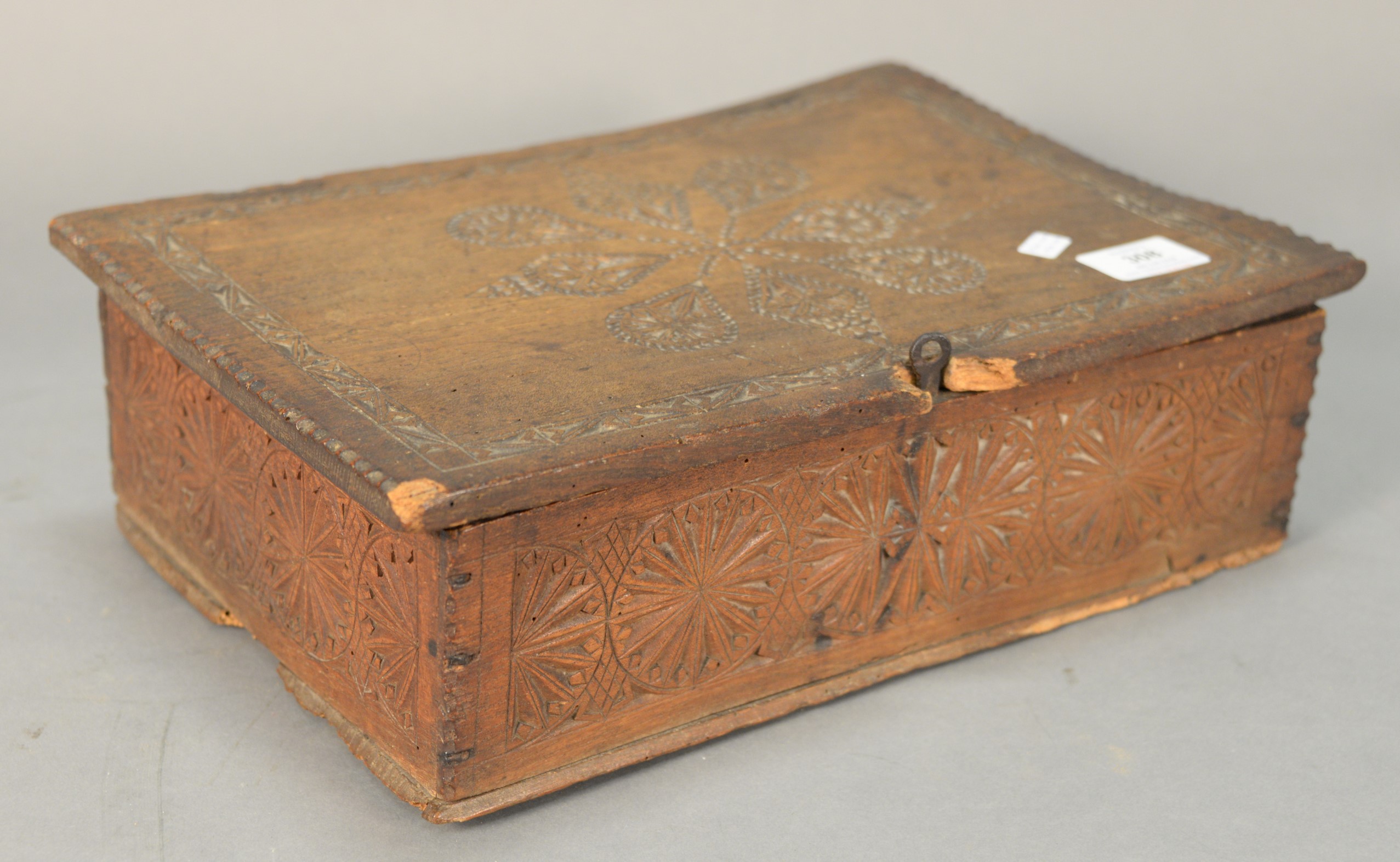 Chippendale cherry secretary desk in two parts, upper portion with broken arch top over two glass doors on lower portion with slant lid over four drawers set on bracket base, circa 1780 doors restored. Note in desk states: Desk belonged to Janz Levitt who received from Anna Hoagland Rice from Harriet Babcock from her father who was nephew to Benj. Lewis who came to Colchester in 1717. ht. 84 in. case wd. 31 1/4 in. dp. 18 in. Provenance: Nadeau’s Auction Gallery 1981