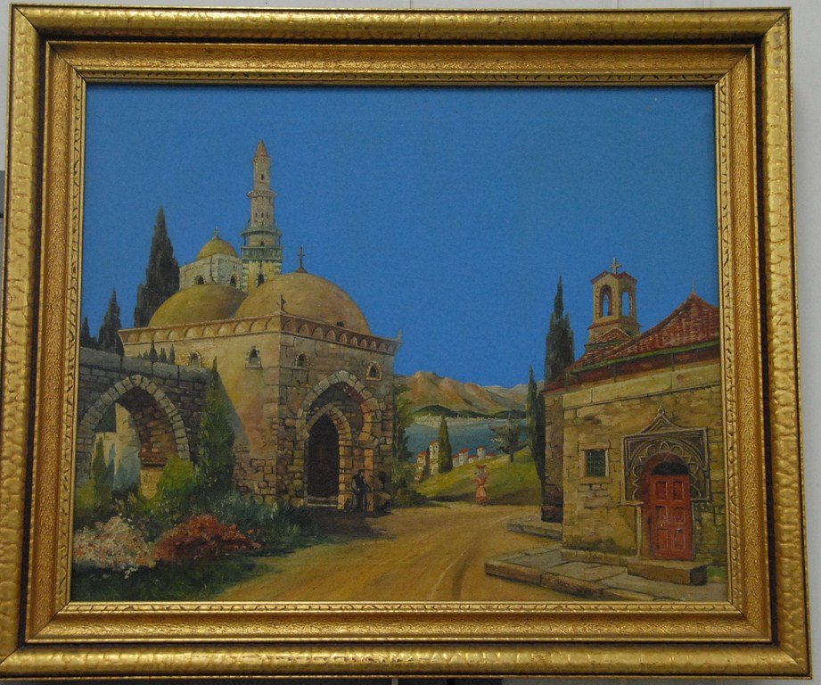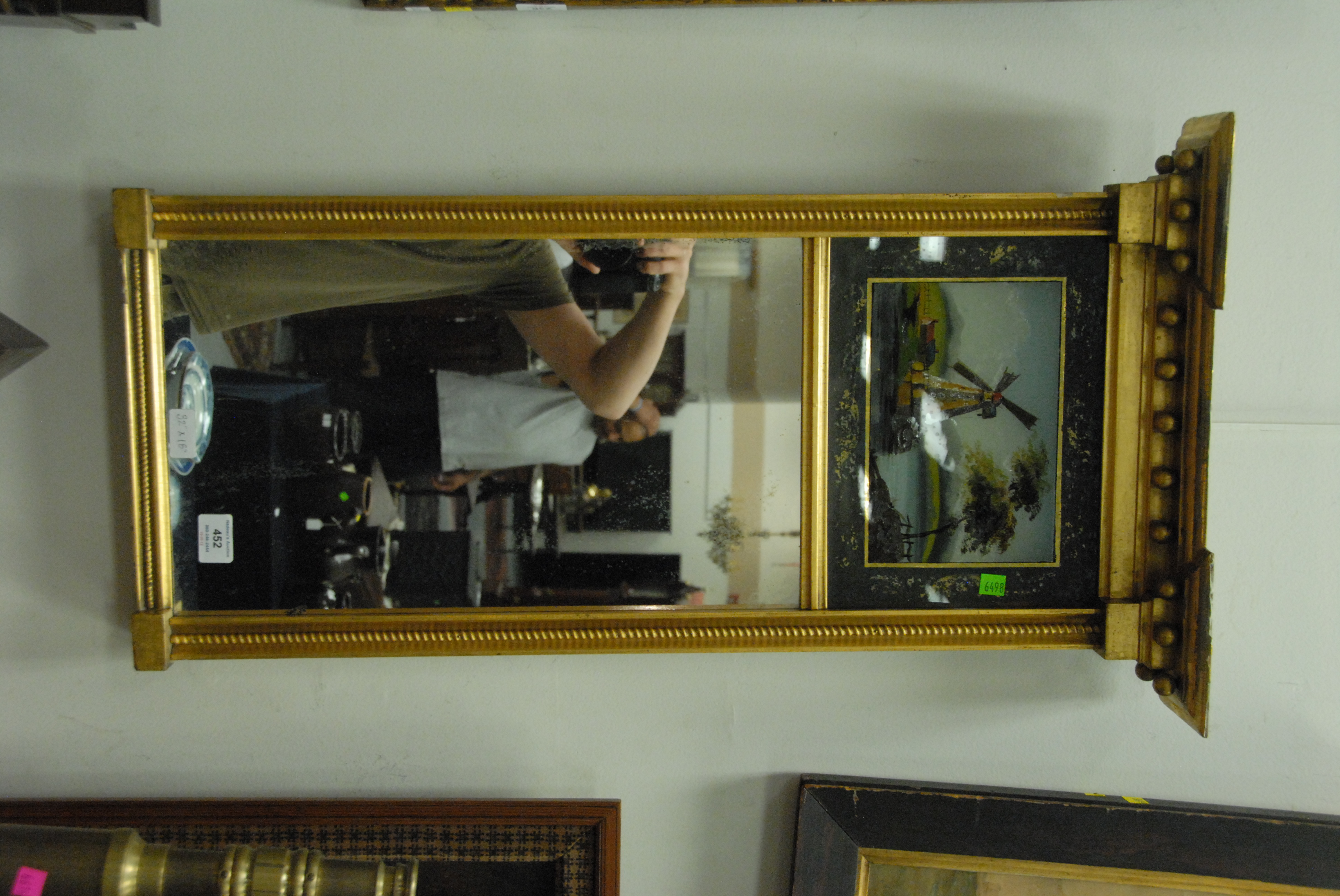 Federal gilt two part mirror having painted windmill in upper section over mirror flanked by spiral columns. ht. 32in. wd. 18in. From the collection of Thomas and Alice Kugelman.