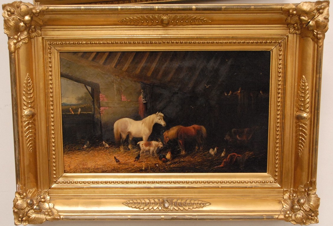 BARN SCENE WITH HORSES oil on canvas signed lower left Indistinctly Leary R. Willie 12 x 20 Provenance: Estate of Judy McDonough Gengras of Stoner Drive, West Hartford, Connecticut.