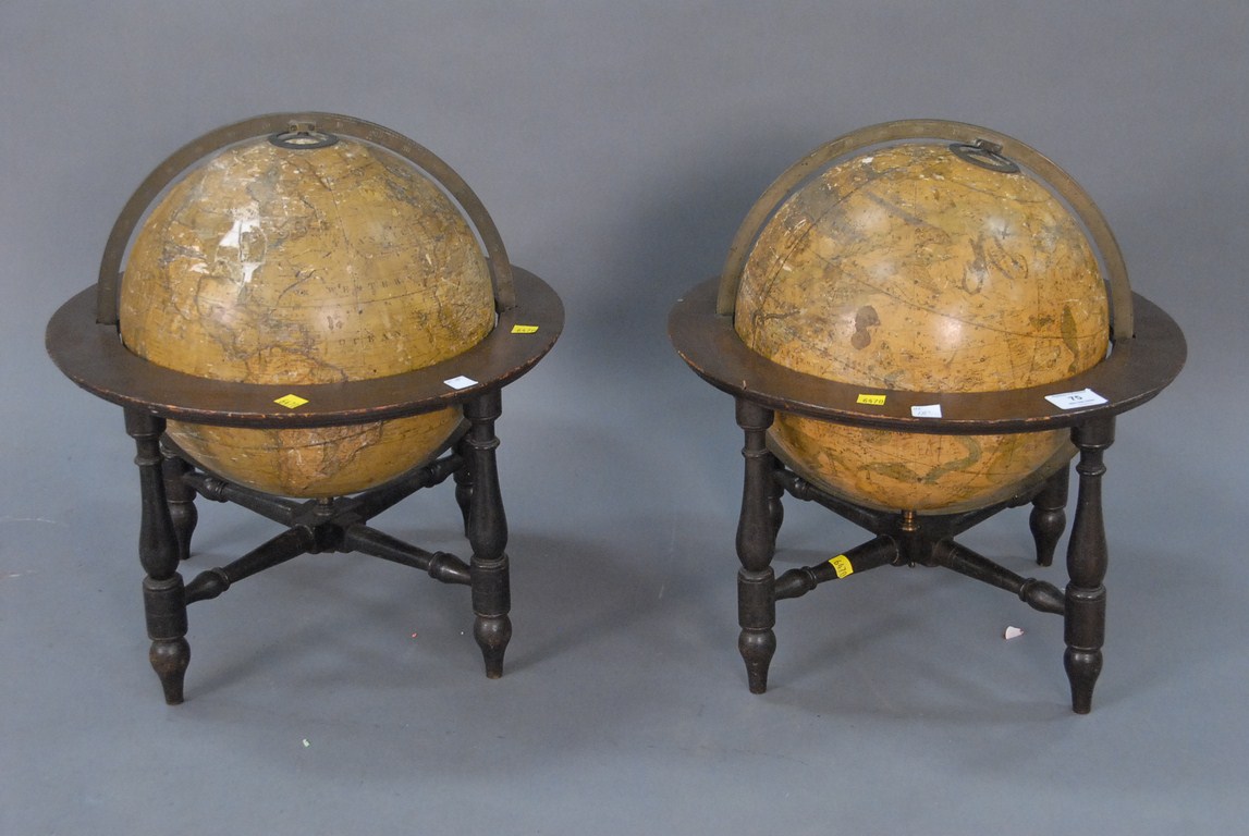 Pair of table globes marked Donaldson Terrestrial and Celestial, circa 1830 some damage. dia. 12in.Provenance: Estate of Charles Archibald Goodwin and Ruth Cheney Goodwin.