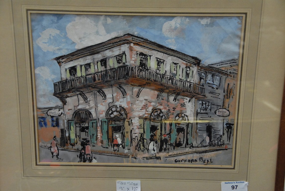 Gifford Beal 1879-1956 OLD ABSINTHE HOUSE New Orleans watercolor gouache on paper signed lower right Gifford Beal having C.W. Kraushaar Art Gallery label on reverse 9 x 12