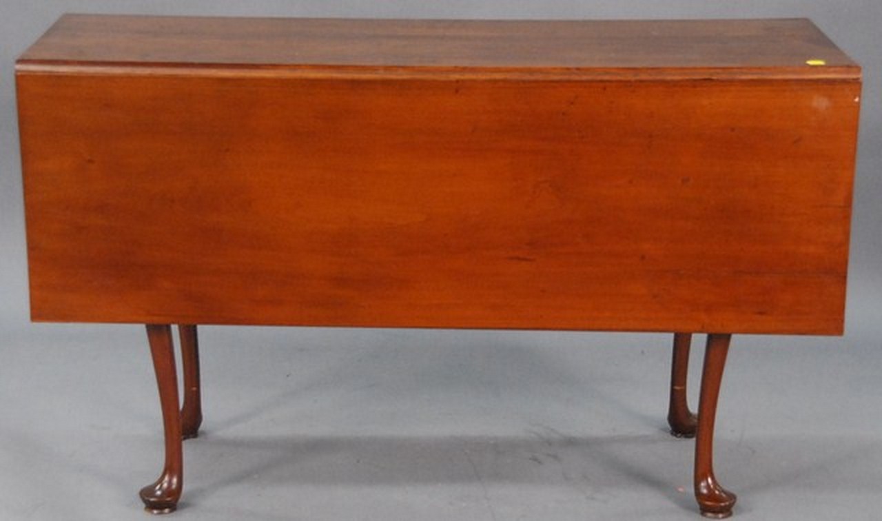 Cherry Queen Anne drop leaf table with cabriole legs and pad feet. ht. 27in. open: 43 x 45 1/2 closed: 15 x 45 1/2 Provenance: Estate of Judy McDonough Gengras of Stoner Drive, West Hartford, Connecticut.