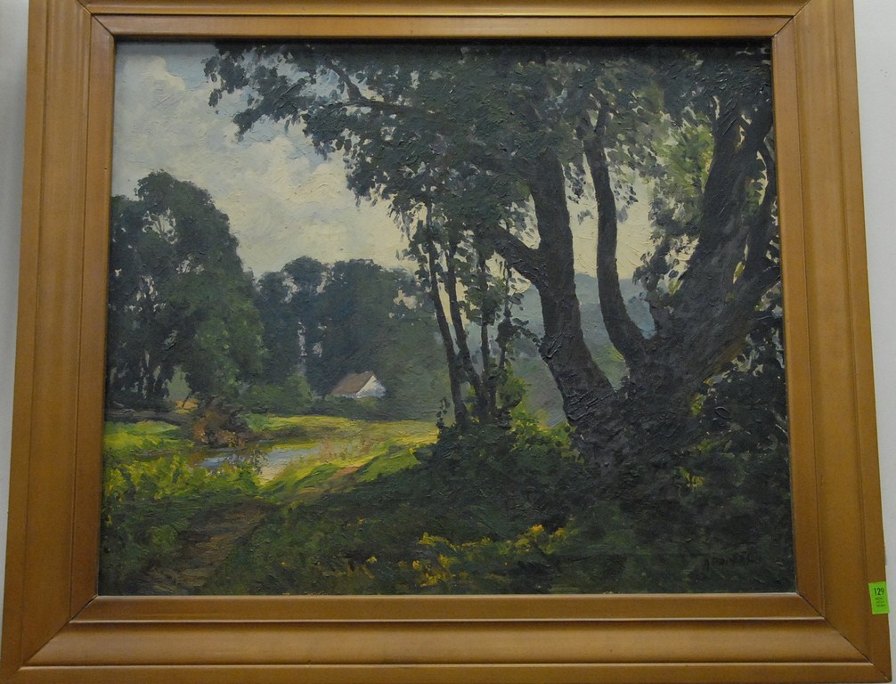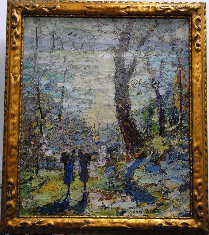 Van Dearing Perrine 1869-1955 WOODED PATH oil on canvas signed lower right Van Perrine 26 x 22 Provenance: Estate of Charles Archibald Goodwin and Ruth Cheney Goodwin.