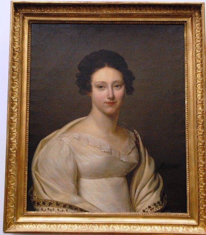 Henri Francois Riesener 1767-1828 PORTRAIT OF A LADY in white dress and shawl oil on canvas signed lower right Riesener restretched and relined 27 x 22 1/2