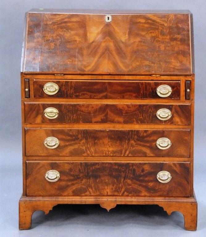 Chippendale mahogany desk with slant lid over four drawers on cut out bracket feet. ht. 45in. wd. 35in. dp. 18in. Being sold to benefit a Connecticut Museum.