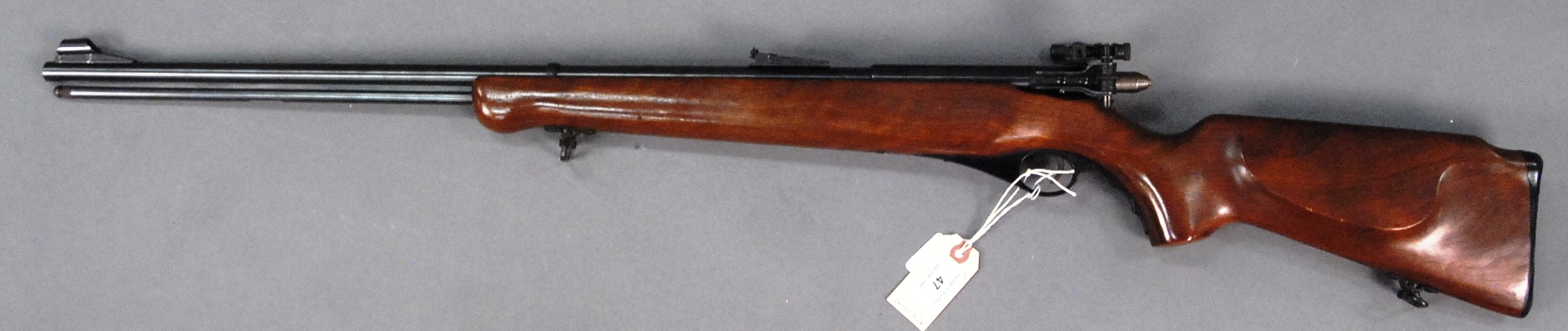 Armas Garbi model 100 W. L. Moore shotgun, side by side, 28 ga. having rose and scroll engravings, double triggers, finely checkered splinter fore-end, straight walnut stock mod, and full chokes, barrel lg. 28, excellent condition, sn 17653, 346.