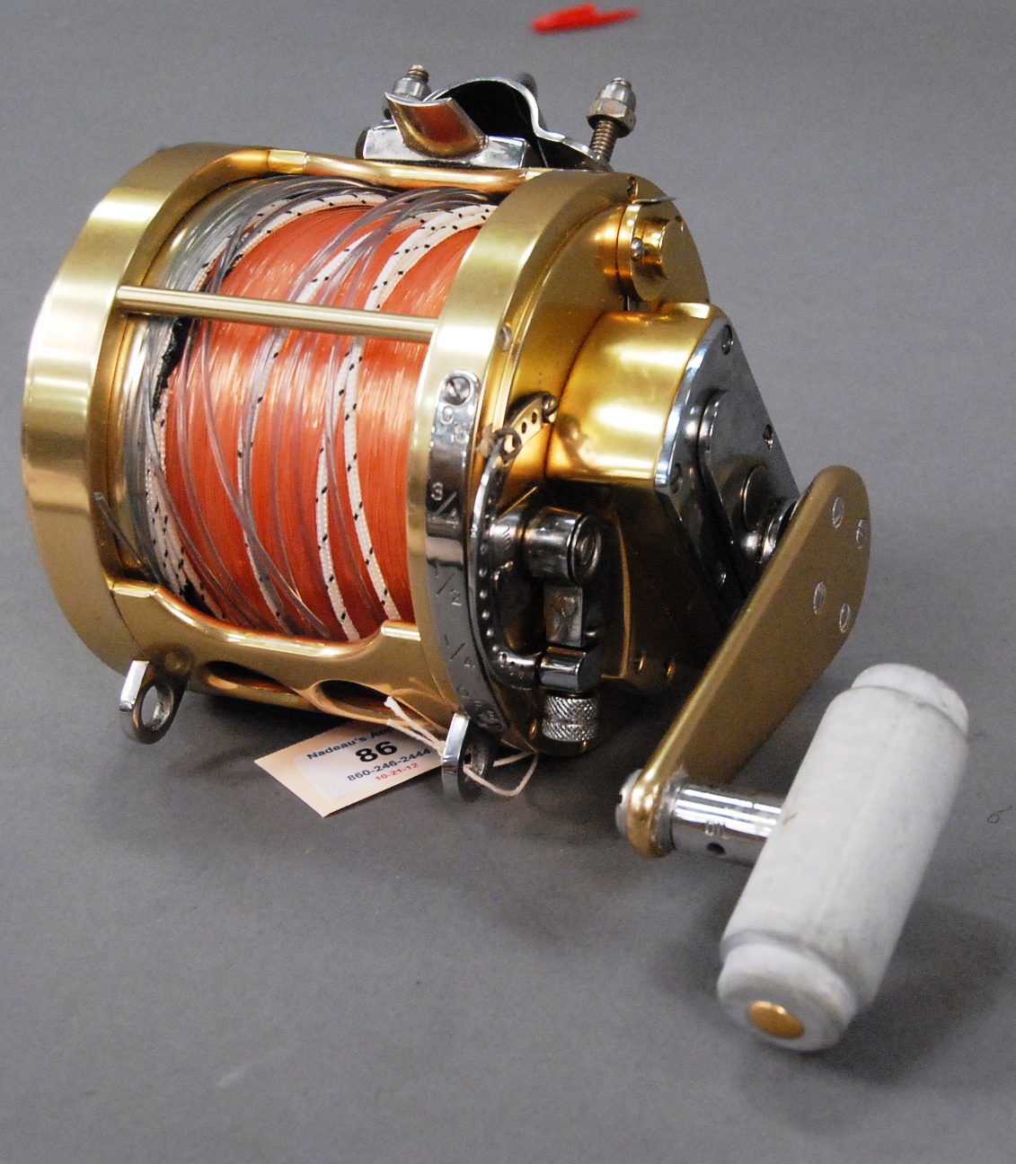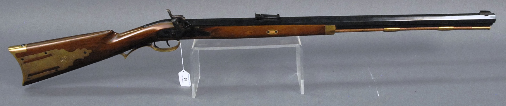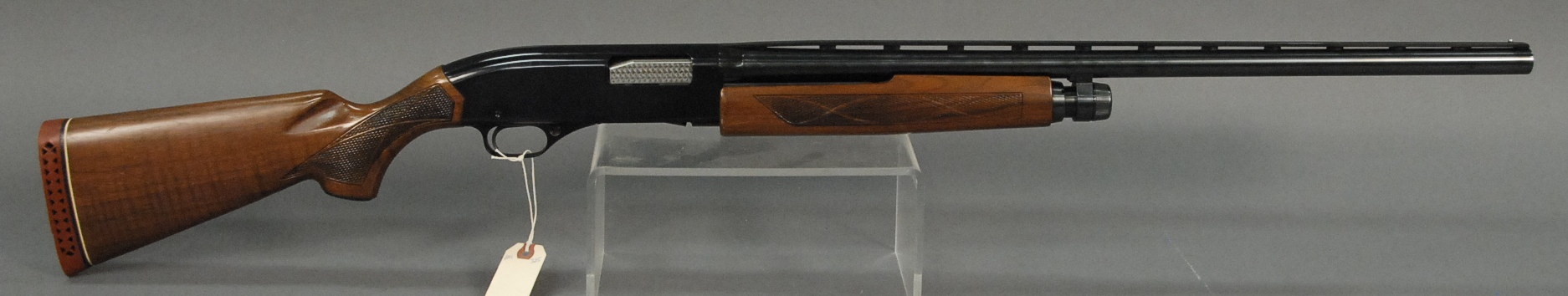Armas Garbi, model 103, William Larkin Moore shotgun, side by side, 16 ga. having hand engraved rose and scroll, double triggers, finely checkered splinter fore-end, and straight figured walnut stock, barrel lg. 28, very good condition, sn 01696, 344.