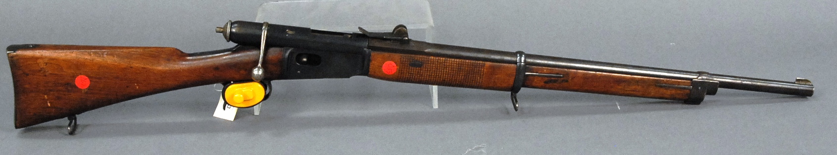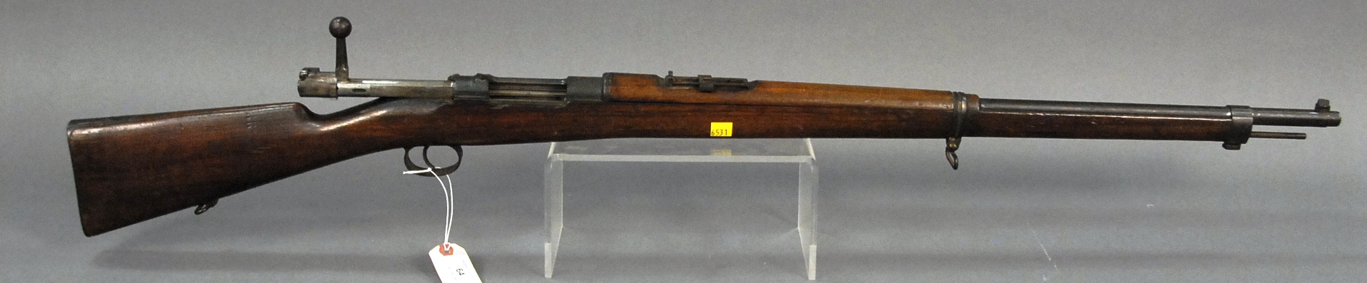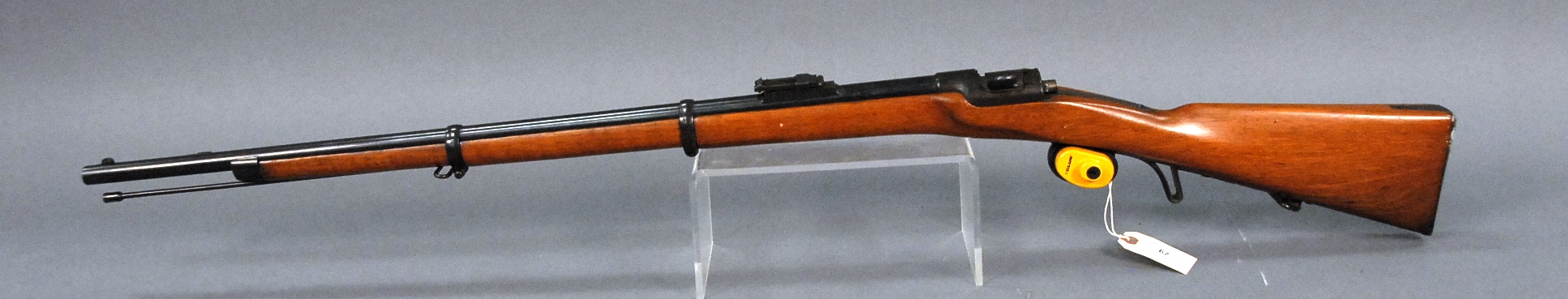Armas Garbi, model 100, William Larkin Moore shotgun side by side 12 ga. with rose and scroll engraving, double triggers, finely checkered splinter fore-end and straight figured walnut stock, barrel lg. 27, good condition, minor rust, sn 17140, 345.