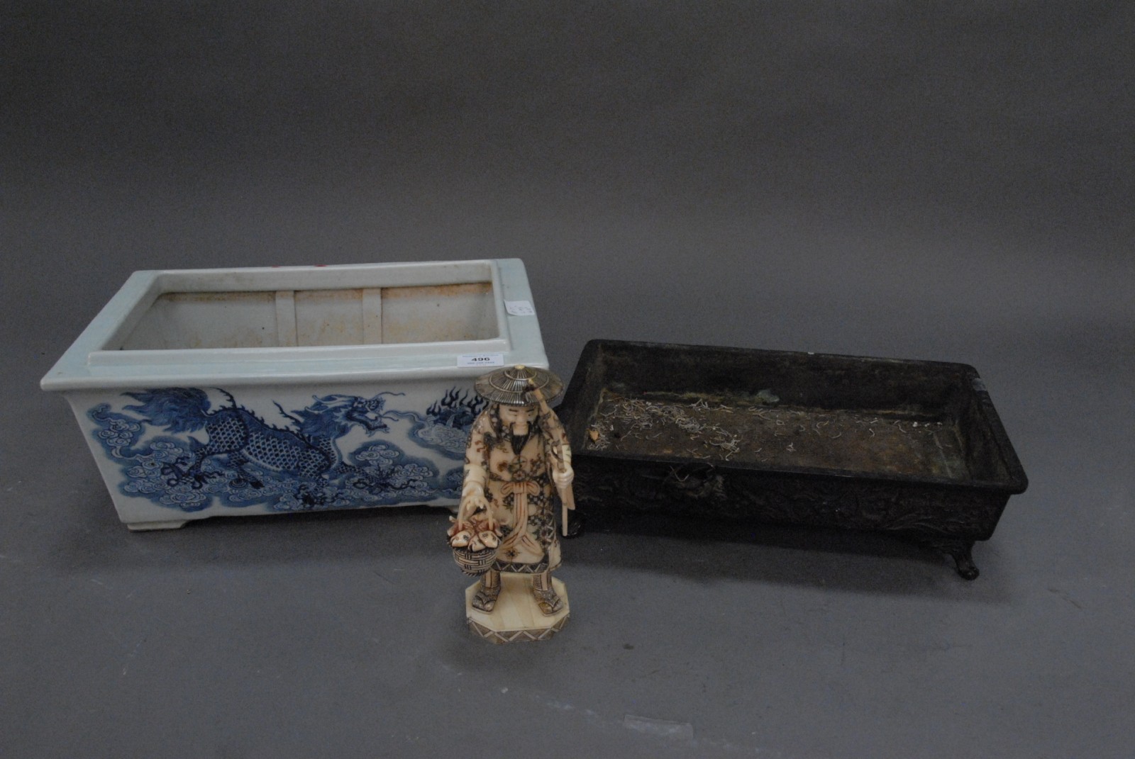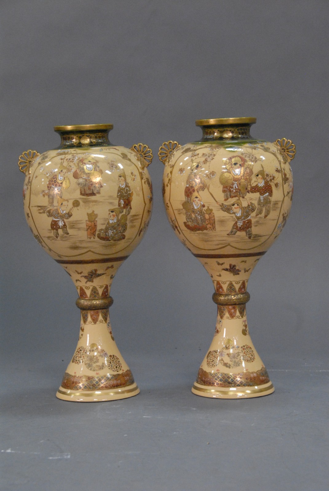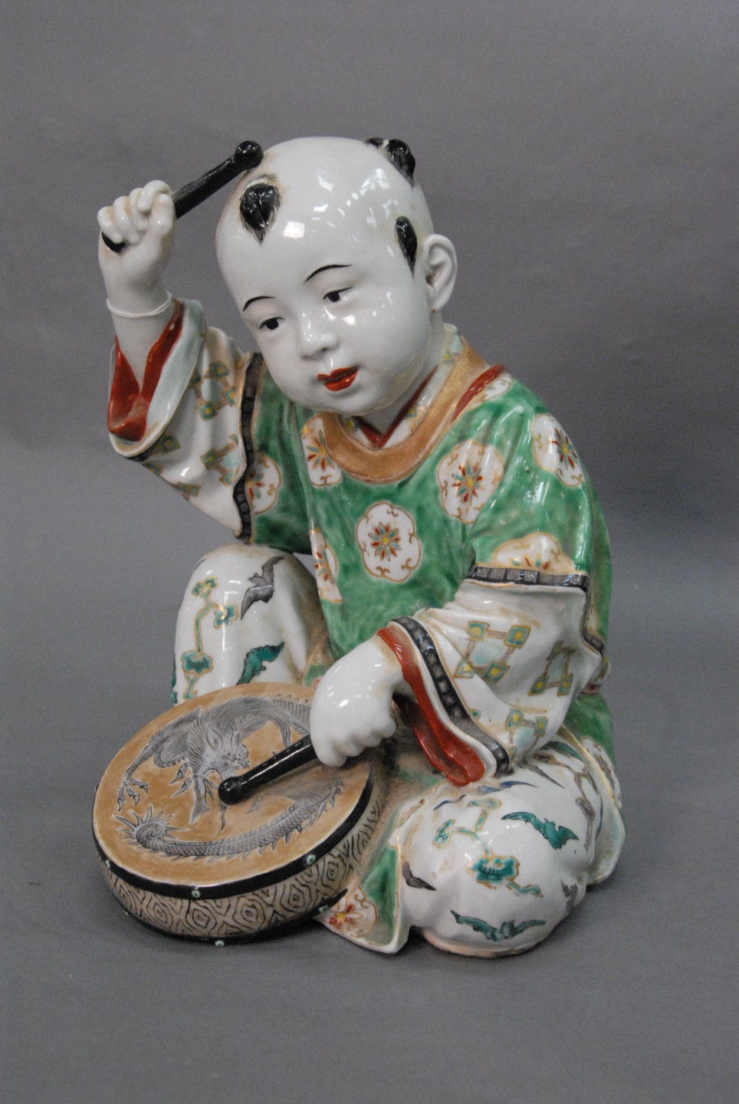 Two Japanese Imari standing figures of women, first is an unusual court lady with pink robe and high headdress and an attendant or Geisha in blue robe both Meiji period late 19th century.