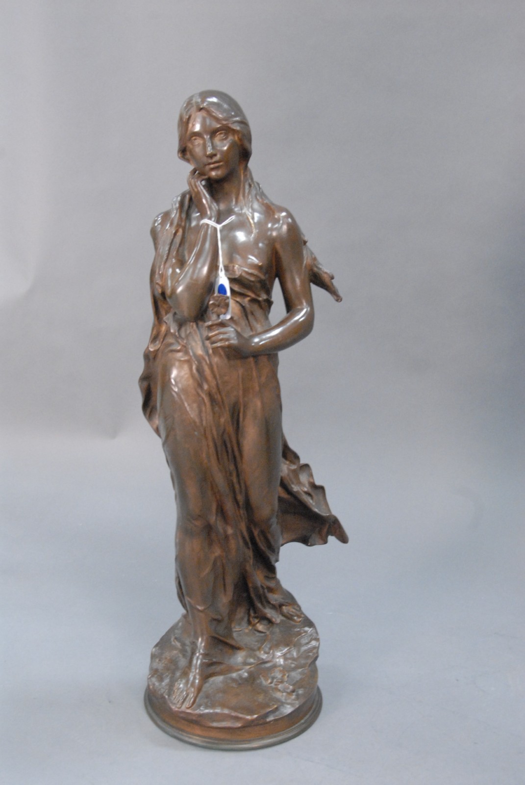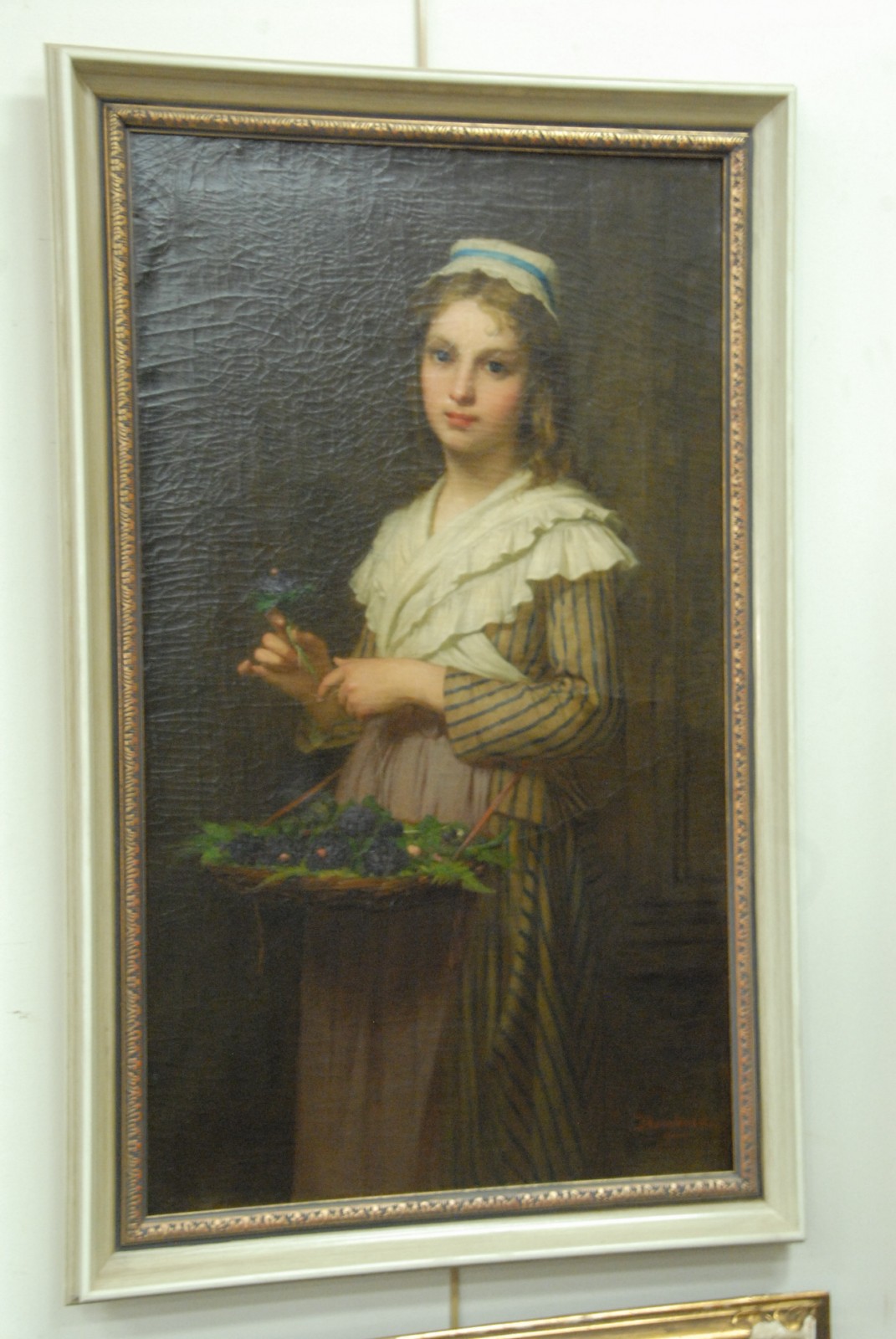 Pierre Francois Bouchard 1831 – 1889 YOUNG MAIDEN WITH BASKET OF FLOWERS oil on canvas signed lower right Bouchard 19th century relined. Provenance: Governor Henry Roberts Edward Roberts 1110 Prospect Ave Hartford to present owner.