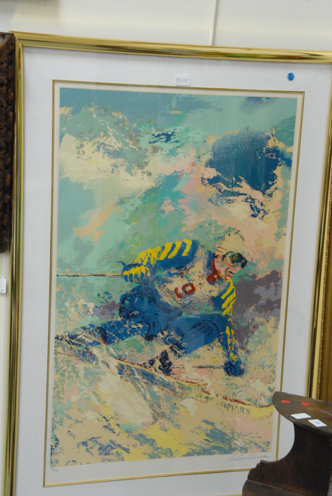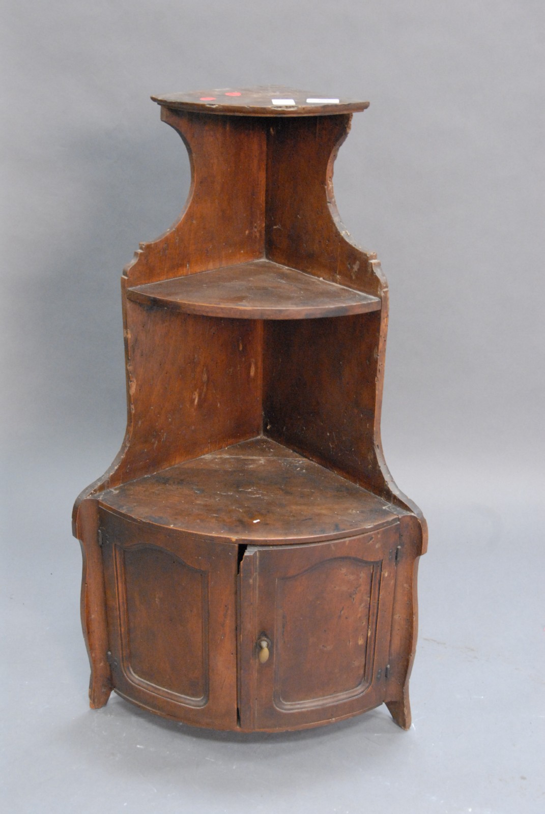 French Provincial two part cupboard, upper section with two doors upholstered back with glass shelf inserts, on lower section with two doors, interior with upholstered inserts on cabriole legs.