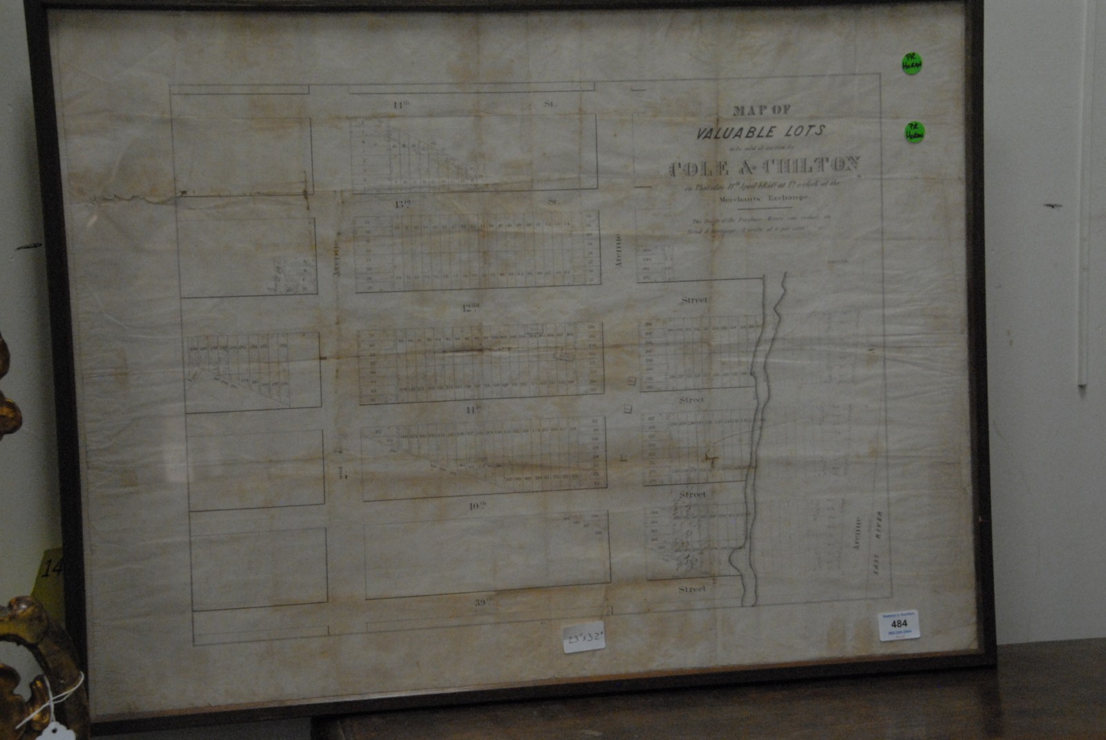 Merchants Exchange and Map of Valuable lots to be sold at auction by Cole and Chilton, Thursday April 11, 1850 at 12:00, 39th Street to 44th Street New York, NY and East River to 2nd Avenue.