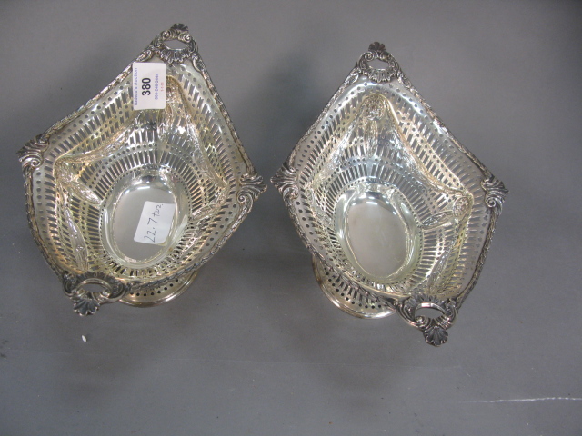 Pair of English silver baskets with mark of Charles Stuart Harris London late 19th century. Provenance: Governor Henry Roberts Edward Roberts 1110 Prospect Ave Hartford to present owner.