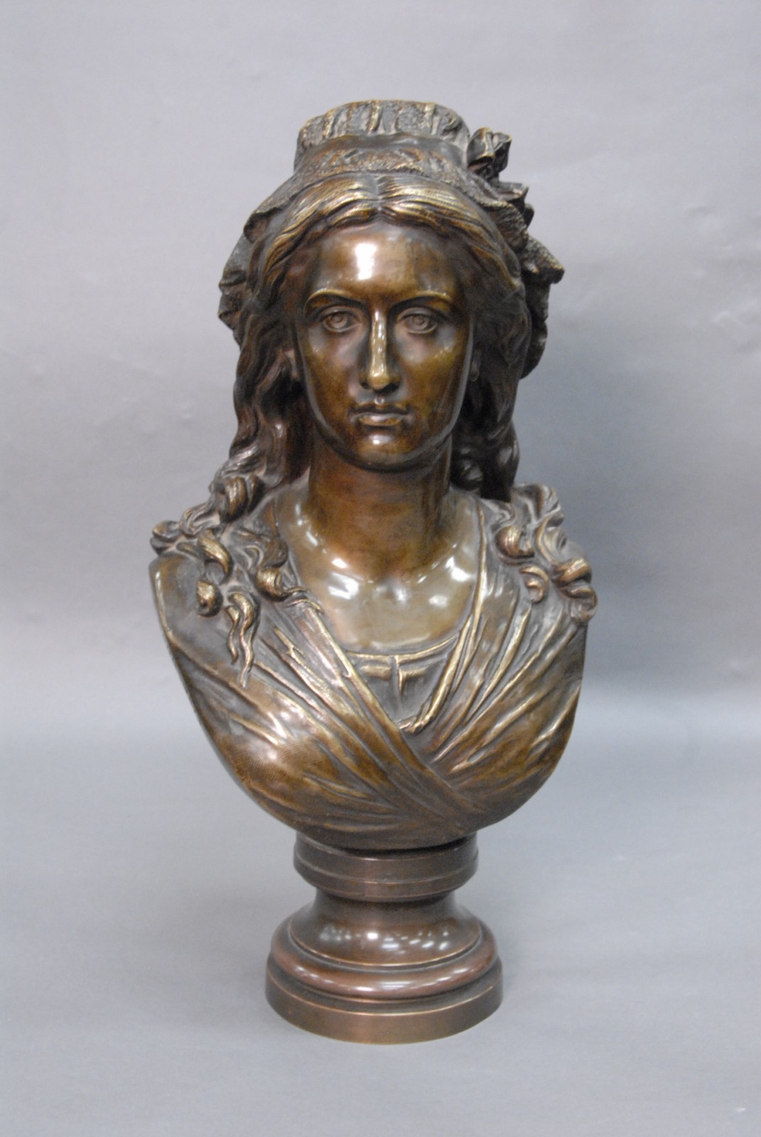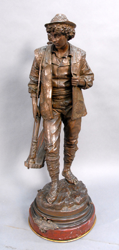 Eutrope Bouret 1833 – 1906 FIGURE OF AN EUROPEAN HARP PLAYER, SANS FAMILLE bronze inscribed on base Bouret stamped on base Bronze Garanti AnTitre. Paris.
