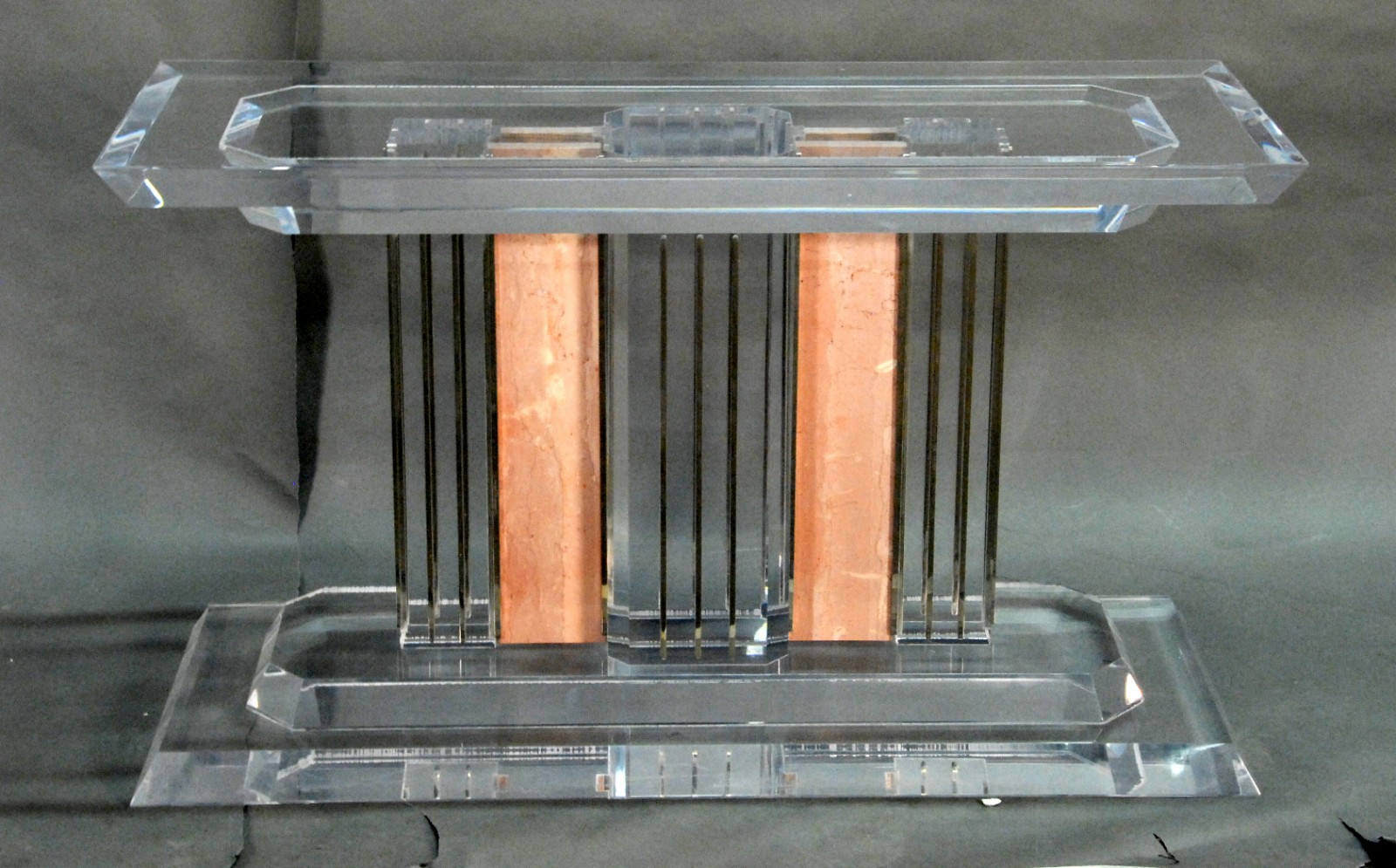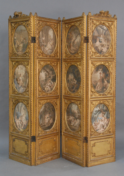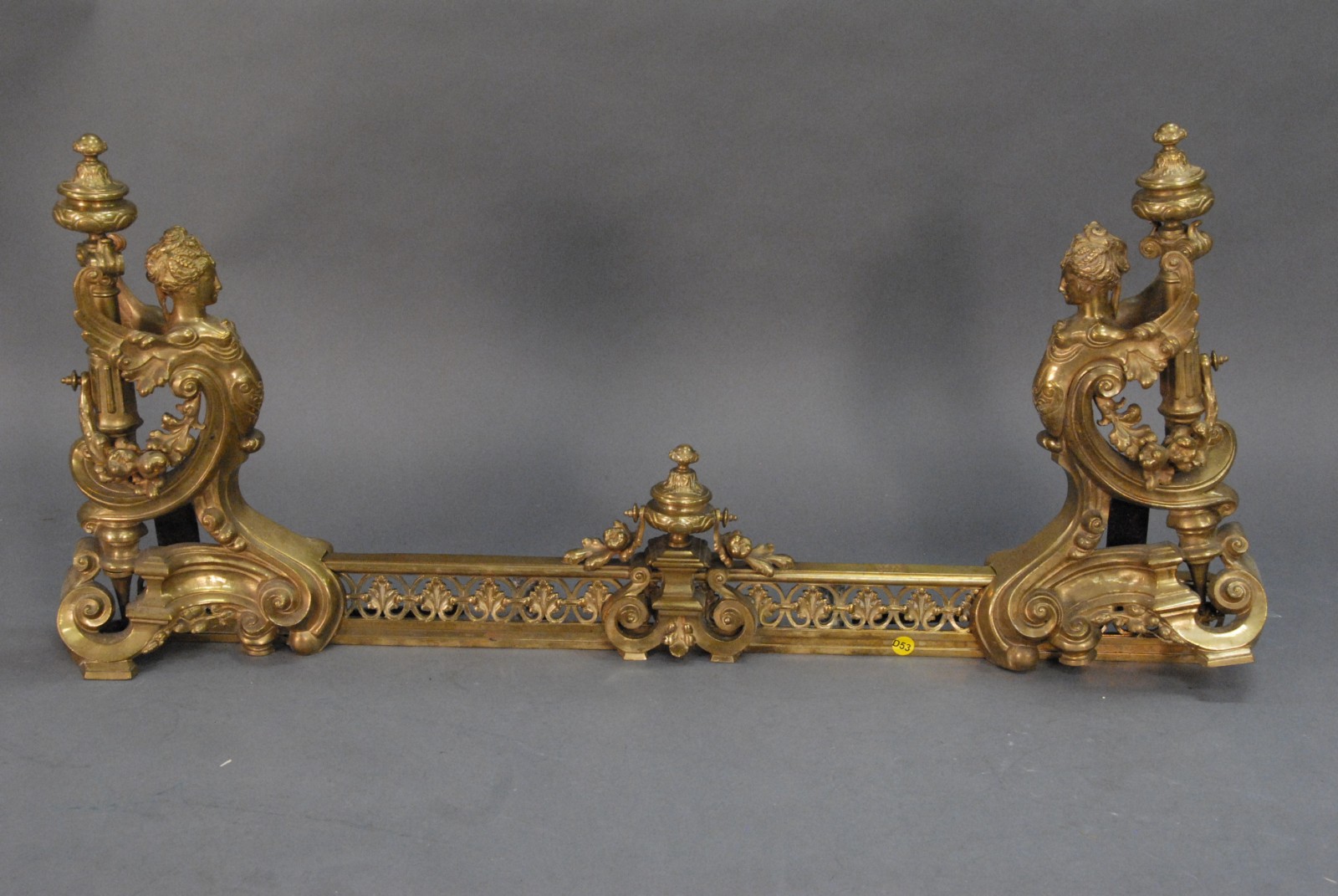 Three part brass fire fender flanked by two winged woman, adjustable. Provenance: Governor Henry Roberts Edward Roberts 1110 Prospect Ave Hartford to present owner.