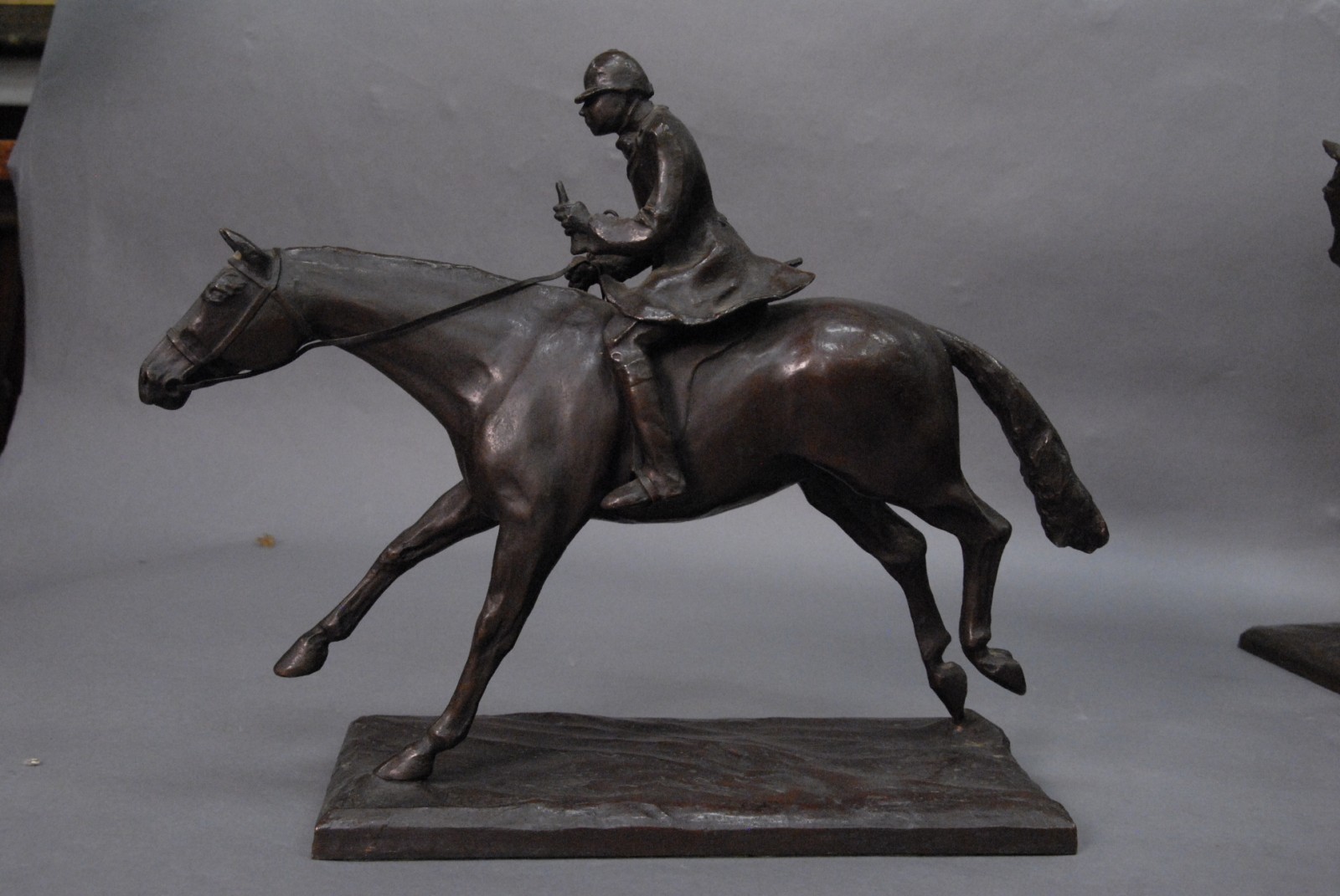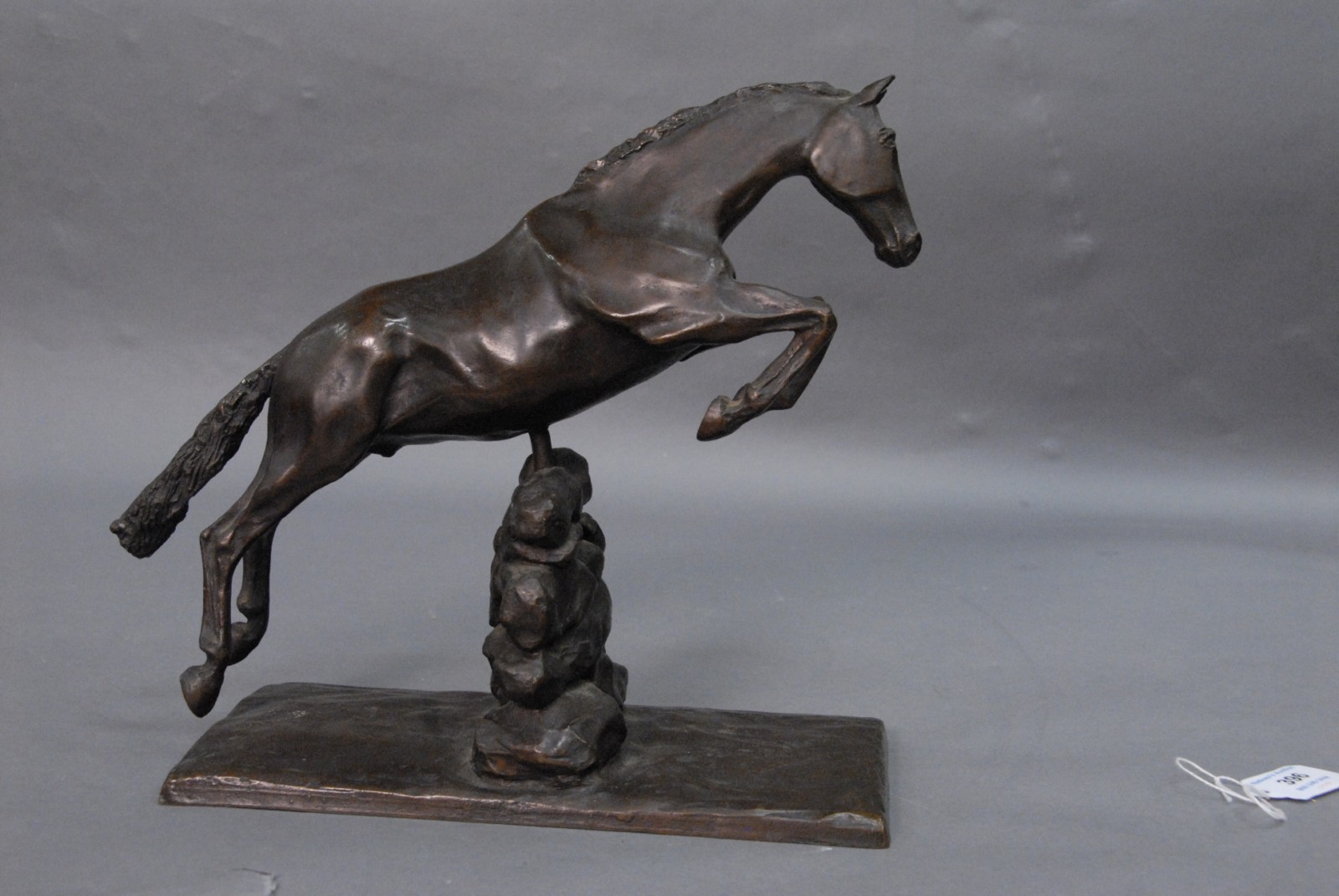 Mildred Kenyon HORSE JUMPING STONE WALL bronze marked on back of base Gorham Co. Founders OIED signed on top of base Mildred Kenyon paper label underneath.