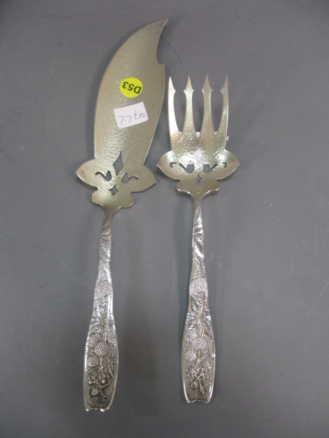Two piece sterling silver fish set, hand hammered with blackberry design handles marked Theodore Starr. Provenance: Governor Henry Roberts Edward Roberts 1110 Prospect Ave Hartford to present owner.