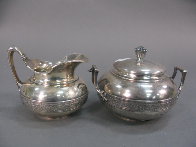 Tiffany two piece sterling silver set covered sugar and creamer marked with an M Tiffany and Company Union Square. Provenance: Governor Henry Roberts Edward Roberts 1110 Prospect Ave Hartford to present owner.
