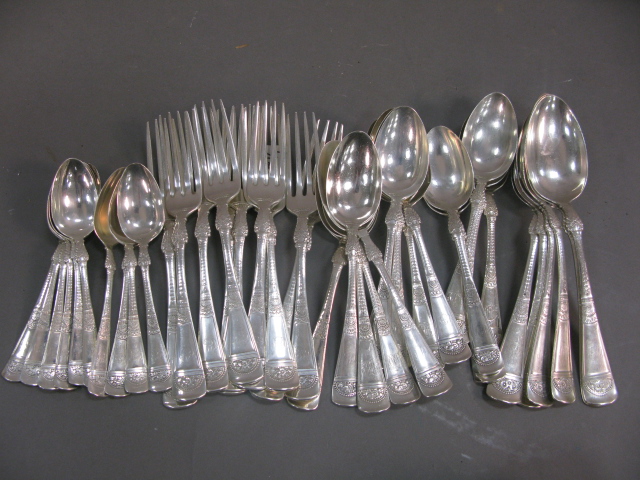 Partial sterling flatware set, forks and spoons one spoon as is, monogrammed. Provenance: Governor Henry Roberts Edward Roberts 1110 Prospect Ave Hartford to present owner.