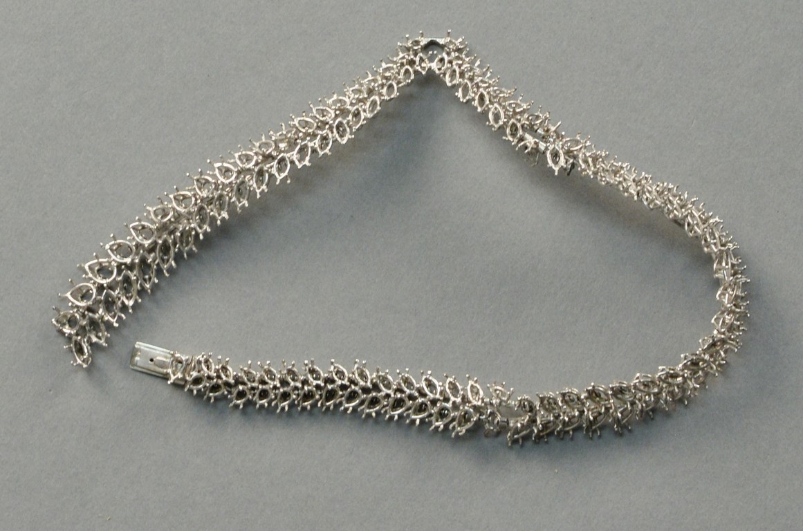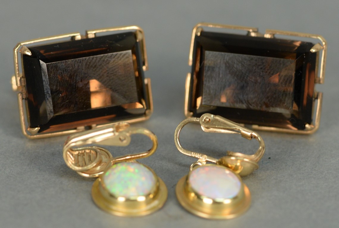 Two necklace clasps, one clasp set with center oval opal surrounded by twelve diamonds opal chipped and one clasp with six diamonds largest two at .35cts each.