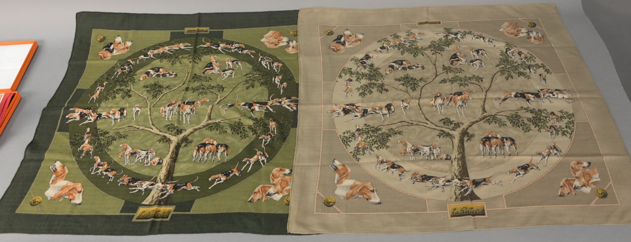 Hermes Paris jewelry box having brass tac dome top wrapped in light purple suede, interior having silk tray over tufted interior, clasp marked Hermes Paris. ht. 3 1/2in., wd. 6in.