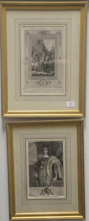 Two 18th century engravings Baron Baltemore engraved by Blotling 10 1/2 x 6 3/4 and The American General Lee Taken prisoner by Lieutenant Colonel Harcourt of the English Army in Morris Country, New Jersey 1776 engraved for Barnard’s New Complete and Authentic History of England by Hawkins sight size 12 1/4 x 7 3/4 Provenance: Property from Credit Suisse’s Americana Collection