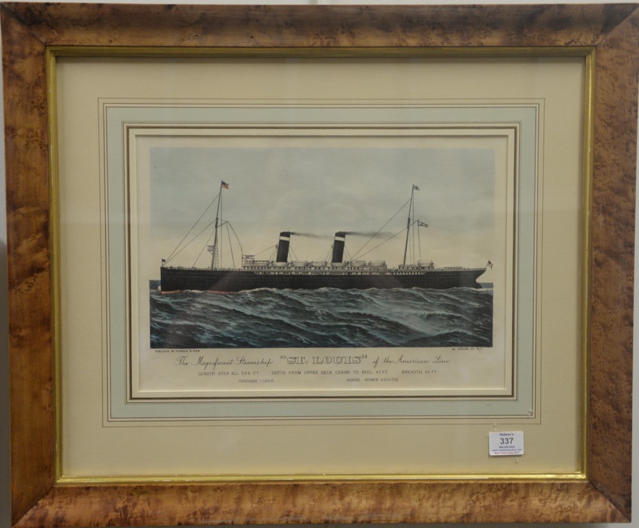 Rare Currier and Ives hand colored lithograph The Magnificent Steamship ST. LOUIS of the American Line sight size 11 x 16 Provenance: Property from Credit Suisse’s Americana Collection