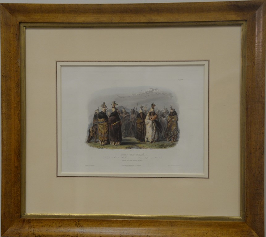 After Charles Karl Bodmer 1809-1893 pair of hand colored aquatint and engravings by Prince Maximilian Zuwied From The Travels in the Interior of North America Dog Sledges of the Mandan Indians plate size 10 x 13 1/2 and Dance of the Mandan Women plage size 9 1/2 x 13 Provenance: Property from Credit Suisse’s Americana Collection