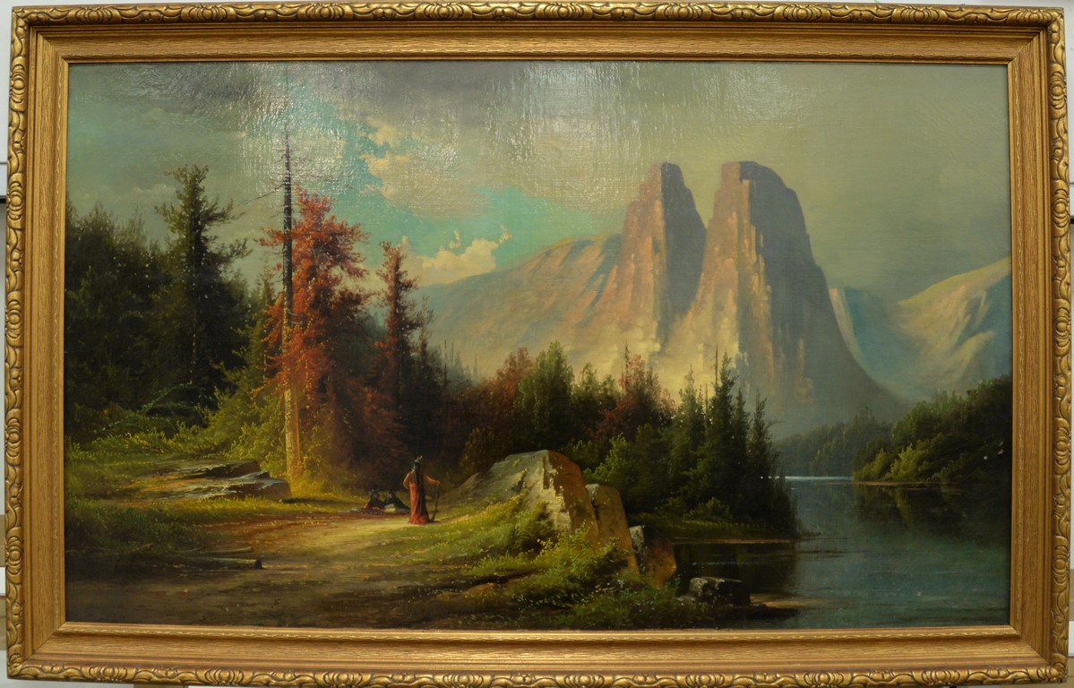 Henry Ossawa Tanner 1859-1937 Flight into Egypt oil on artist board signed lower right: H.O. Tanner 17 1/2 x 20 1/2 Written on verso: All the mastic varnished coul.. about 10% of what to believe to be hidded lines, June 14th painted a donkey’s Homestead Trip, June 15th varnished with glue mixture, August 17th all set glaze better America’s first internationally renowned African-American artist, Henry Ossawa Tanner was born in Pittsburgh to a well-educated and devoutly religious family. When Henry was age 13, his father, the Reverend Benjamin Tucker Tanner, moved the family to Philadelphia. With the support of his parents and inspiration from the art of the 1876 Philadelphia Exposition, he enrolled in the Pennsylvania Academy to study with Thomas Eakins who became a close friend. Tanner briefly painted animals and was determined to become the American Landseer in response to the demand for animal portraits. Between 1886 and 1887 Tanner was an illustrator for Harper Brothers, a publishing firm willing to advance black artists and writers. He then moved to Atlanta, Georgia, where he briefly and unsuccessfully ran a photography studio, but by 1891 he turned back to painting and sailed for France. In Paris he studied at the Julian Academy with Benjamin Constant and J.P. Laurens. He received many honors and was considered a ‘strong man’ at Julian’s before his first Salon picture. He traveled to celebrated locations as Pont-Aven, but remained relatively unswayed by contemporary art movements. Tanner discovered the Salons and their power to advance a painter’s career, both abroad and in America. The acceptance of his painting, The Banjo Lesson by the 1894 Salon marked both a turning point in his career and a shift in emphasis in his choice of subject, for it was his first major exploration of the pathos of the black in society. He returned briefly to Philadelphia but decided Paris was his natural home. At first, he was highly successful with genre painting but switched to religious subjects in the mid-1890’s and traveled extensively in the Near East to absorb Biblical references. In 1899, Tanner married Jessie Macauley Olssen, a white Californian, and decided to make France his home for the remainder of his life. He feared that Americans would not be accepting of an interracial marriage. In 1908, he wrote of France, There is a breadth, a generosity, an obsolete cosmopolitanism about her recognition of the fine arts, which bars no nationality, no race, no school, or variation of artistic method. Sources include: Antiques Magazine Peter Falk, Who Was Who in American Art
