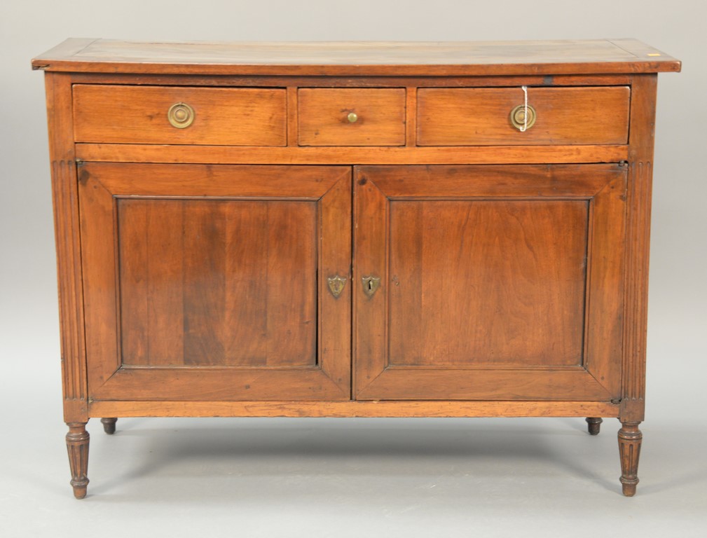 Continental sideboard with rectangular top having three drawers over two doors on turned legs, early 19th century. ht. 34 in. wd. 44 in. dp. 17 1/2 in. Provenance: The Estate of Natalie Rafferty