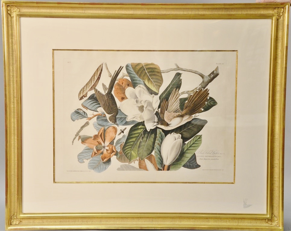 After John James Audubon by Rober Havell Black-billed Cuckoo, Male 1. F.2 COCCYZUS ERYTHROPHTALMUS Plant Magnolia grandiflora. No. 7 Plate 32 engraving with etching, aquatint, and hand-coloring watermark: J. Whatman Turkey Mills marked lower left: Drawn from Nature and Published by John J. Audubon F.R.S.E. F.L.S. M.W.S. marked lower right: Engraved, Printed, & Coloured by R. Havell & Son London, 1828 plate 18 1/2 x 26 sheet size: 24 1/4 x 33 1/2 total 36 1/2 x 44 1/4 Provenance: Property from Credit Suisse’s Americana Collection