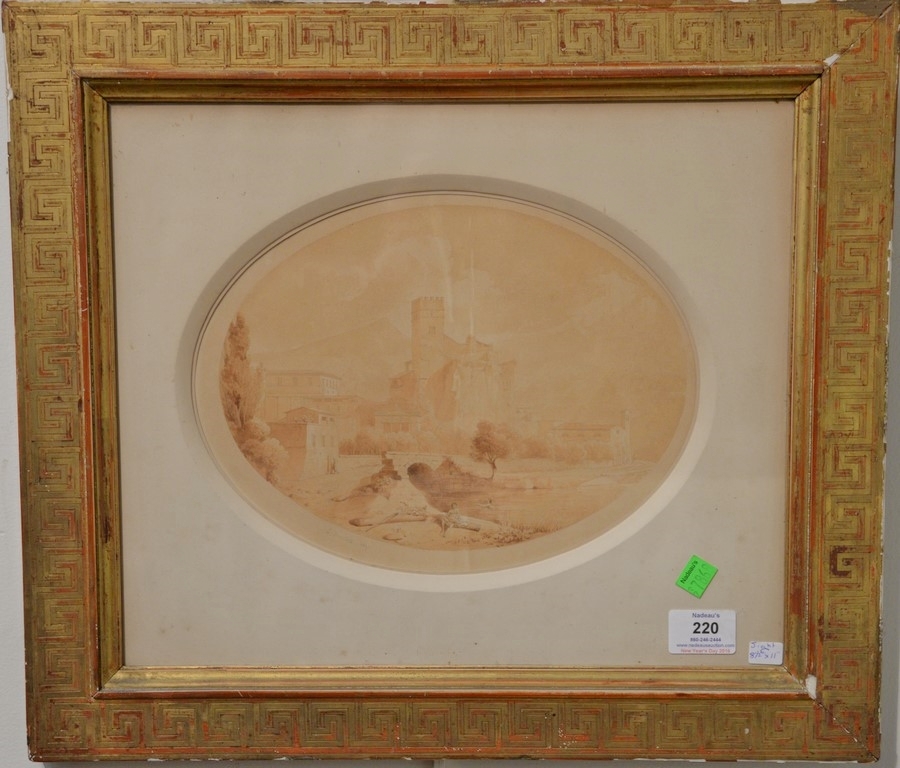 Jules Frederic Bouchet 1799-1860 Bathing in the Canal on the City’s Edge watercolor and pencil on paper signed and dated lower left: J. Bouchet 1847 sight size: 8 1/2 x 11