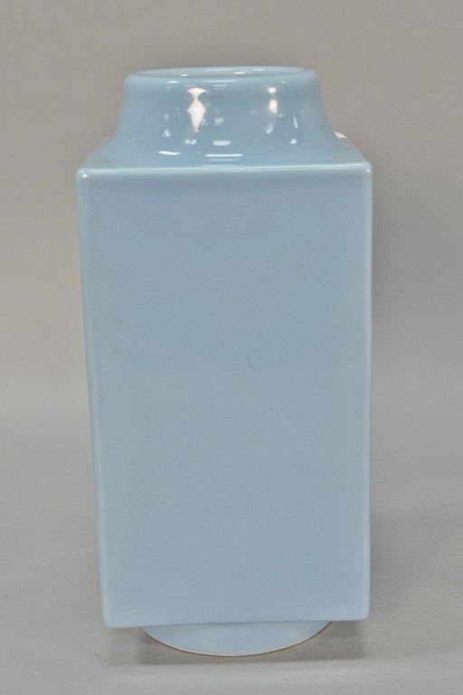 Chinese porcelain cong form vase, probably late Qing Dynasty, pale blue glaze, six character Yongzheng mark on base in underglaze blue. ht. 11 in. wd. 5 in.