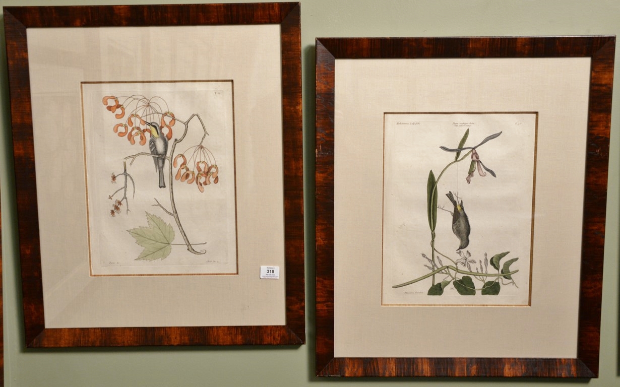 Mark Catesby 1679-1749 pair of hand colored copper plate engravings The Yellow-Throated Creeper Parcus Americanus Plate #62 and The Yellow-Rump Parus Vropygeo Lutes Plate #58 From The Natural History of Carolina, Florida and the Bahama Islands framed by W. Graham Arader III sight size: 15 x 11 1/2 Provenance: Property from Credit Suisse’s Americana Collection