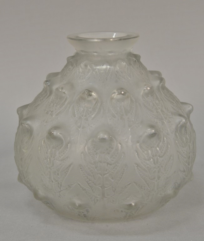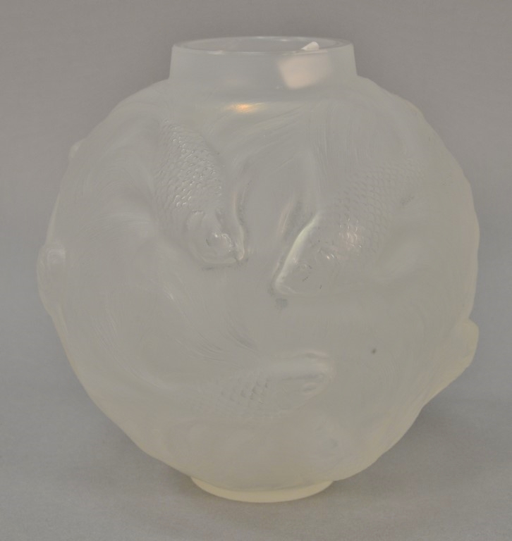 Lalique Formose frosted globular fish vase, signed R. Lalique in script. ht. 7 in. Provenance: Property from the Estate of Sylvia Leven of Bloomfield, Connecticut.