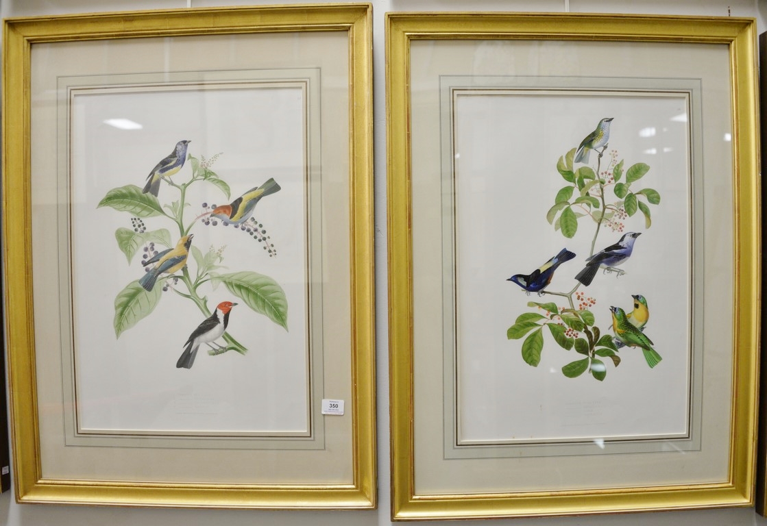 Set of Four After Jean Theodore Descourtilz 1796-1855 four large folio chromolithograph finished by hand Ramphocelus Jacapa, plate 31 Tanagra Mexicana, plate 35 Tanagra Punctata, plate 36 Pyrgita Cucullata, plate 43 all printed by Waterlow & Sons Chromo-Lithographers, from Ornithologie Bresilienne, ou Histoire des oiseaux dubresil sight size: 23 1/2 x 16 Provenance: Property from Credit Suisse’s Americana Collection