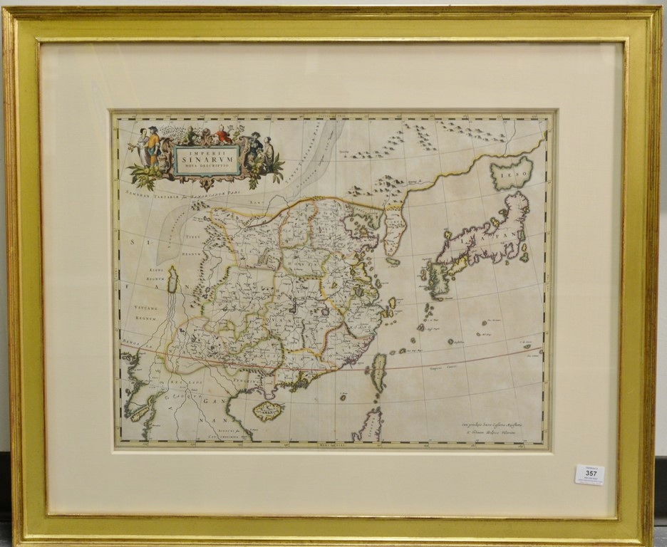 Martini Blaeu Imperii Sinarum Nova Descriptio double page hand colored engraved map China sight size: 18 1/4 x 23 1/2 Provenance: Property from Credit Suisse’s Americana Collection