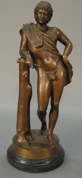 Ferdinand Barbedienne 1810-1892 bronze, kneeling woman signed on back F. Barbedienne, Foundeur with circular mark Reduction Macanique Collas. ht. 10 1/2in.