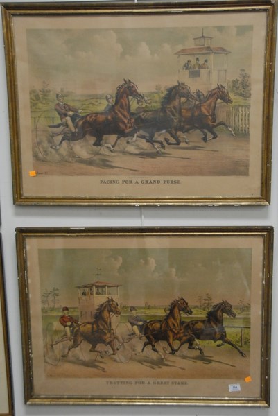 Currier and Ives Two large folio color lithograph After L. Maurer PACING FOR GRAND PURSE and TROTTING FOR A GREAT STEAK copyright 1890 by Currier & Ives NY 22 1/2 x 31 1/8 sight size