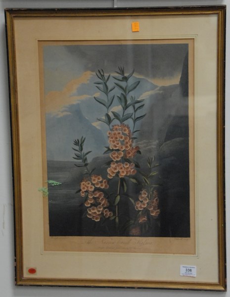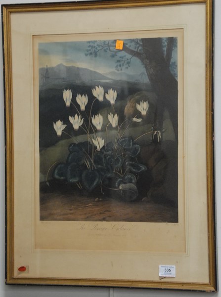 Robert John Thornton THE PERSIAN CYCLAMEN aquatint in colors marked lower left Pether Pinx marked lower right Elmes Sculp. label B.C. London, Published for Dr. Thornton 1804 20 x 14 1/2 sight size