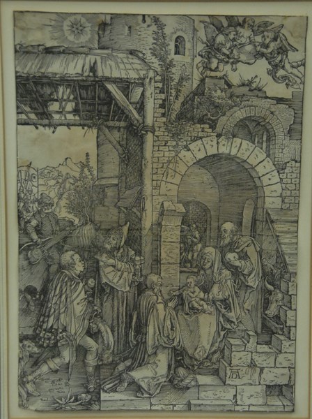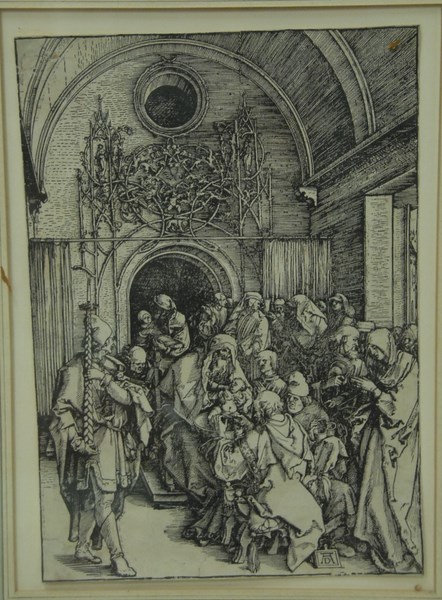 Albrecht Durer 1471-1528 THE CIRCUMCISION: FROM THE LIFE OF THE VIRGIN woodcut laid on paper initialed lower right AD Carus Gallery label on reverse 11 3/4 x 8 1/4