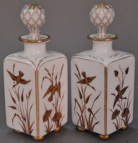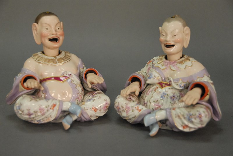 Pair of Meissen nodders each with open mouths and movable tongues, marked with two crossed swords one chipped at sleeve opening and other slight chip at neck. both ht. 5 1/2in.
